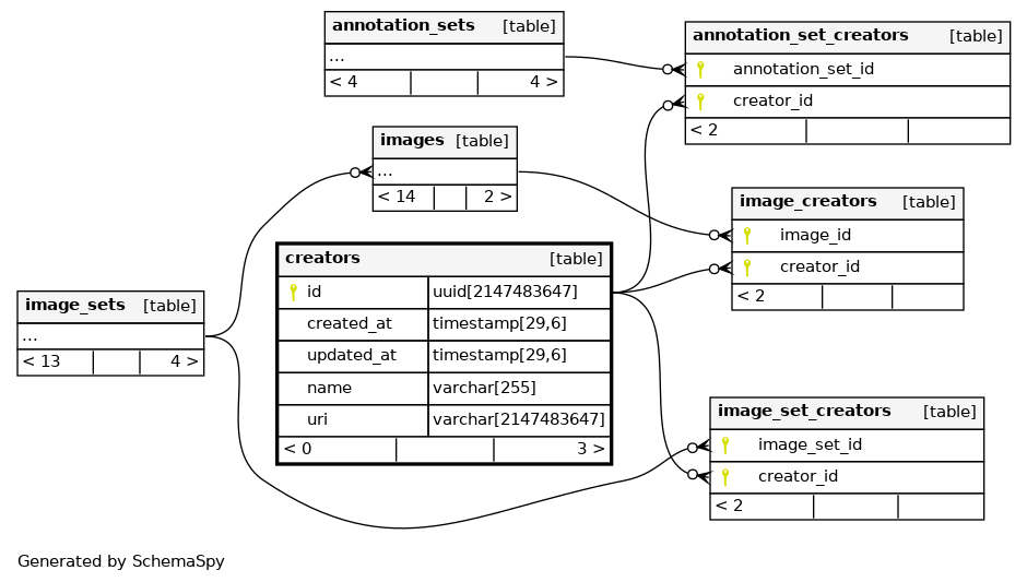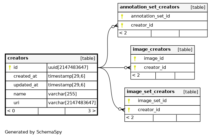 | creators_pkey | Primary key | Asc | id |