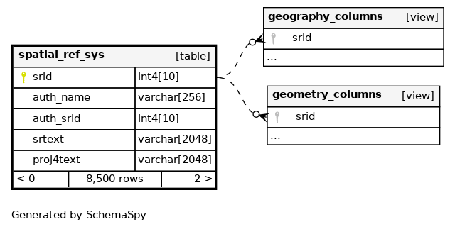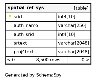 | spatial_ref_sys_pkey | Primary key | Asc | srid |